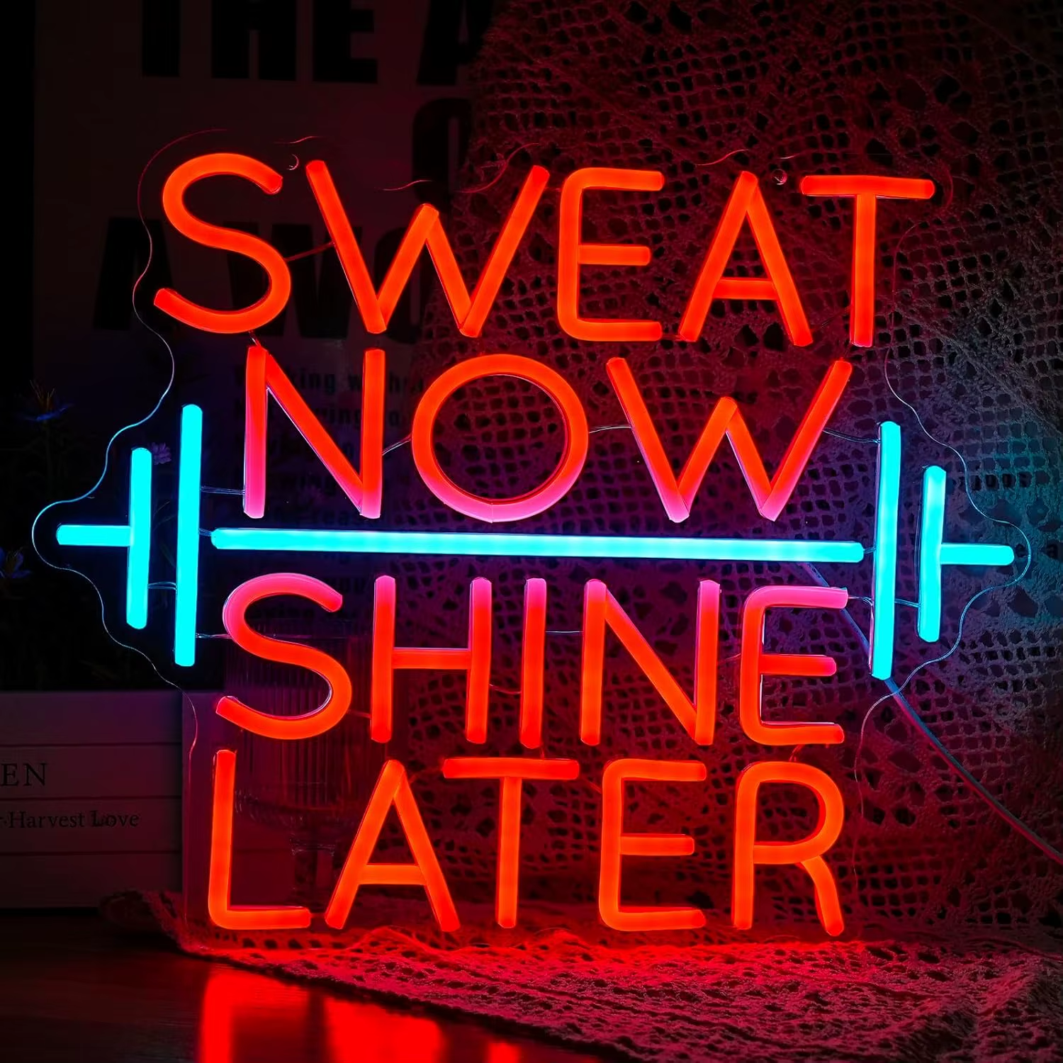 Sweat Now Shine Later Neon Sign USB Powered LED Neon Light Barbell Lifting the W