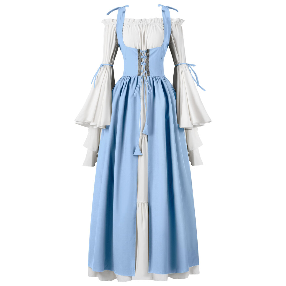 Spooktacular Creations Renaissance Costume Women Medieval Light Blue Chemise Ren Faire Dress Irish Overdress Renaissance Corset with Trumpet Sleeve