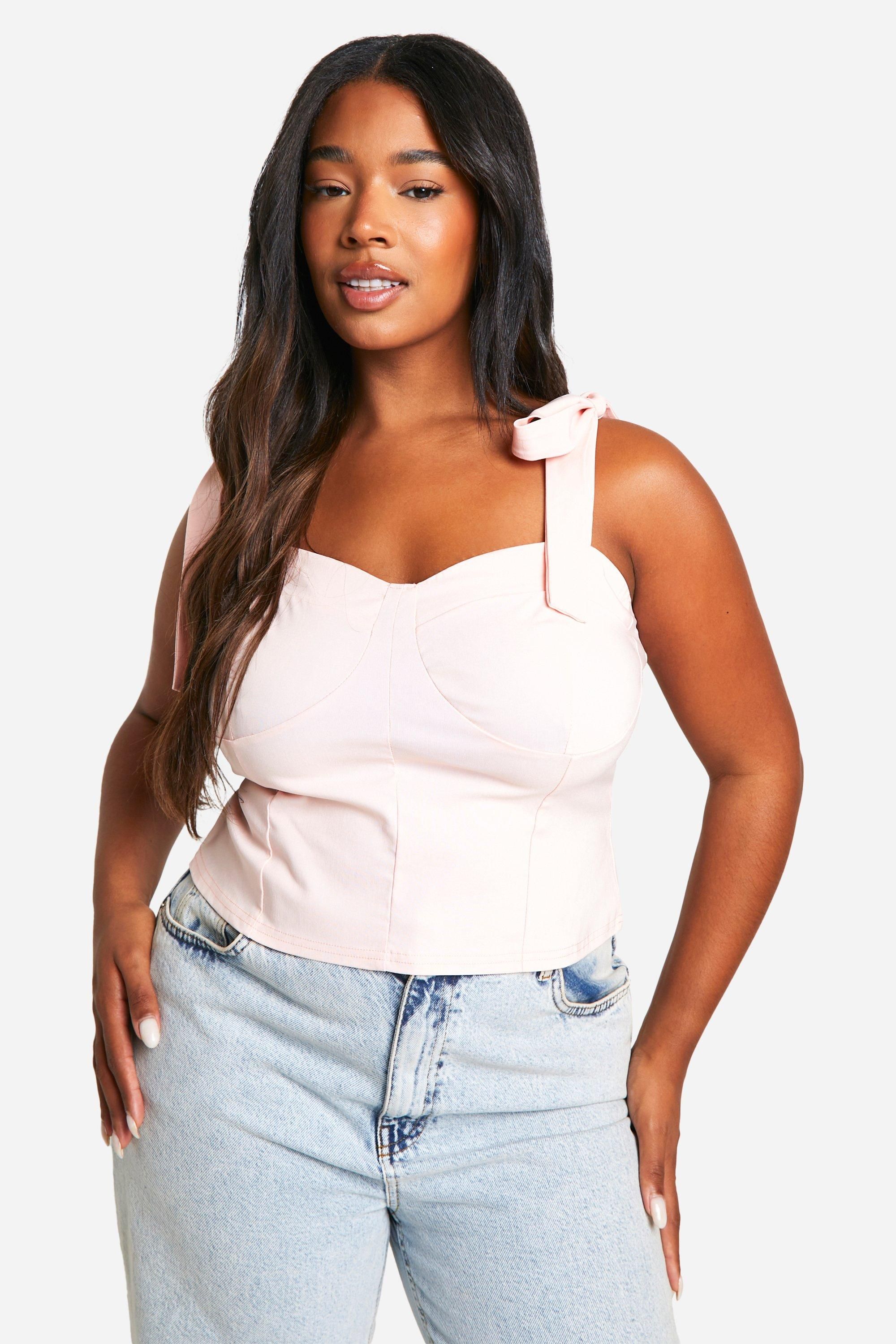 Boohoo Womens Plus Bengaline Tie Bow Corset Top - Light Pink - Size 28 UK