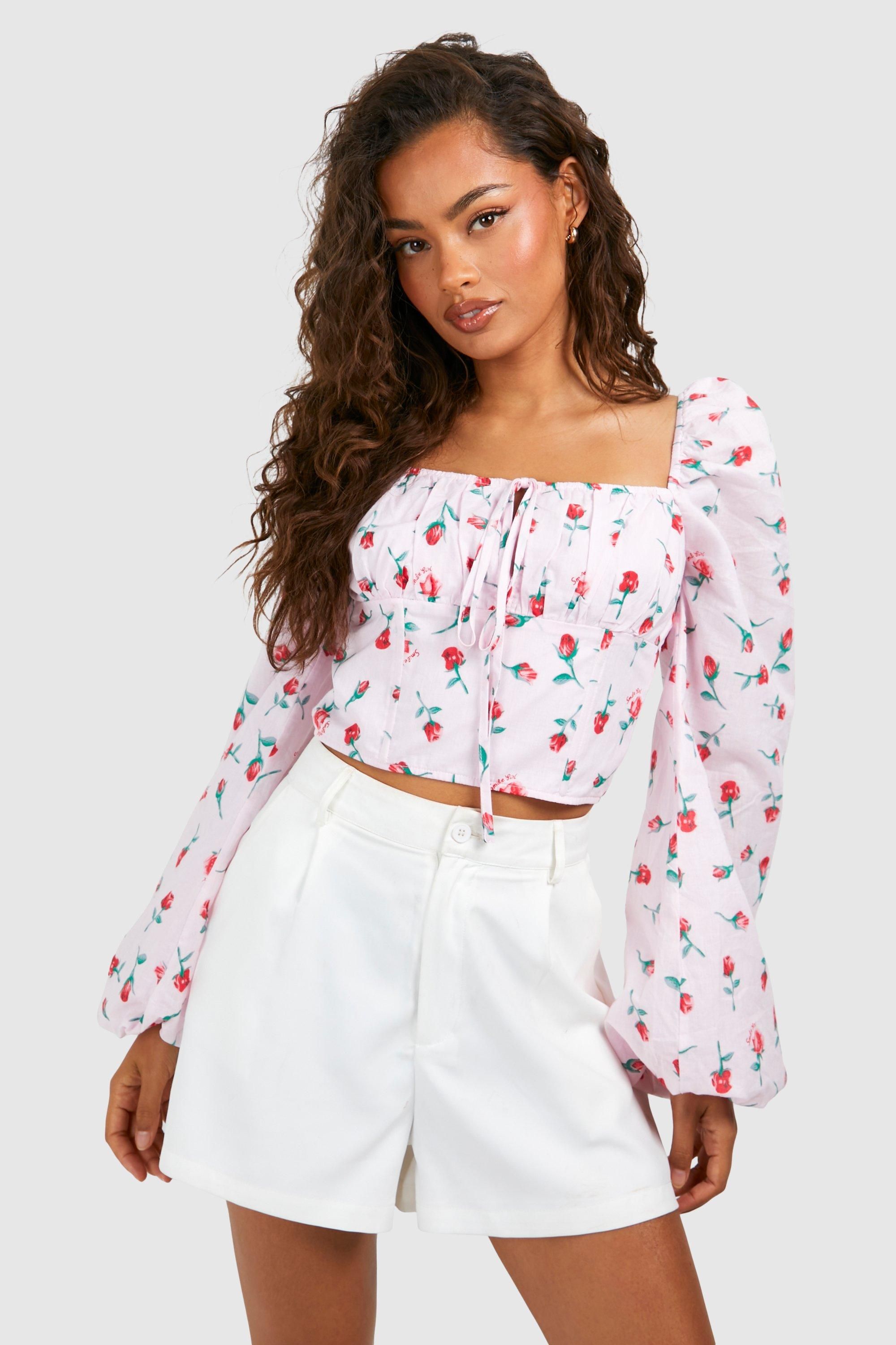 Boohoo Womens Rose Printed Tie Detail Corset - Light Pink - Size 6 UK