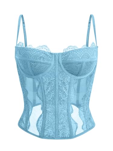 Dealmore Corset Top for Women Going Out - Lace Mesh Date Night Spaghetti Strap Party Club Top, Light Blue, Small