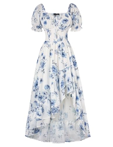 SCARLET DARKNESS Women's Victorian Dress A-Line Irregular Hem Long Casual Floral Corset Dress for Beach Light Blue S
