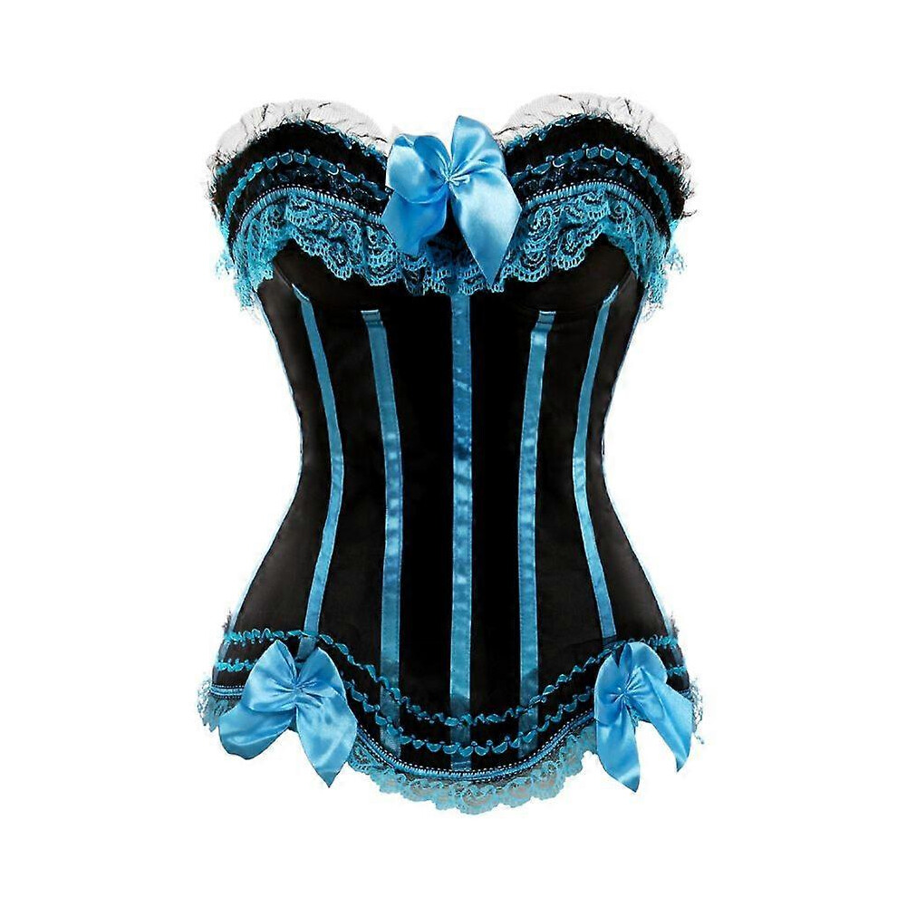 (S, 8068 light blue) Sexy Satin Lace Overlay Corset Bustier Overbust Burlesque Corselet Top Bodyshaper Lingerie Showgirl Party Costume Plus Size