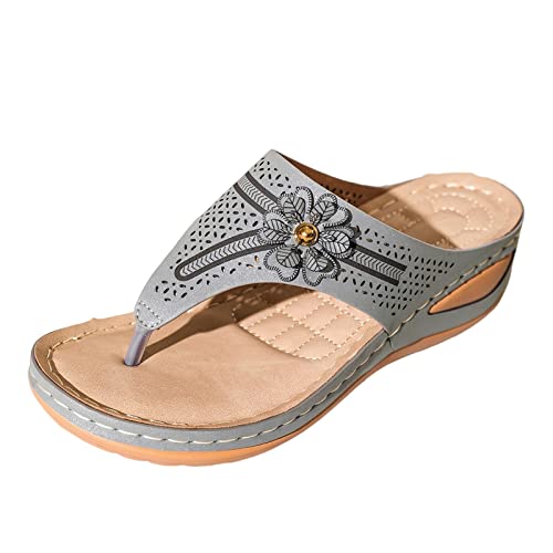 IUYTYSER Flip Flops For Women With Arch Support Ladies Shoes Platform Thong Sandals Casual Beach Light Soft Sole Buckle (Grey, 6) White Black Womens Flop Crocs Walking Size 6 Leather Blue