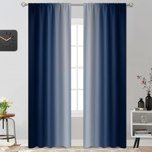COSVIA Ombre Navy Blue Curtains, 84 inch Long, 2 Panels, Room Darkening, Light Blocking, Insulated, Thermal Gradient, for Bedroom/Living Room, 52x84 inches