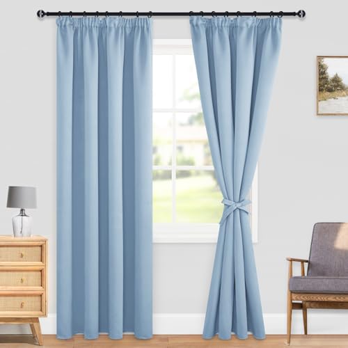 DWCN Blackout Curtains for Bedroom Thermal Insulated Curtain with Tiebacks Pencil Pleat Curtains for Living Room 46 x 54 inch Length, Light Blue, 2 Panels