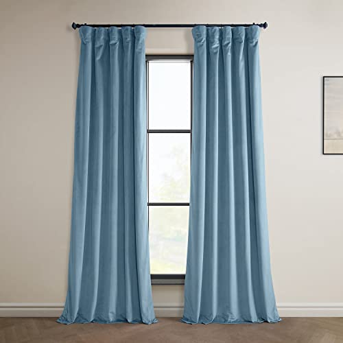 HPD Half Price Drapes Heritage Plush Velvet Curtains 96 Inches Long Room Darkening Curtains for Bedroom & Living Room 50W x 96L, (1 Panel), Light Blue Taupe