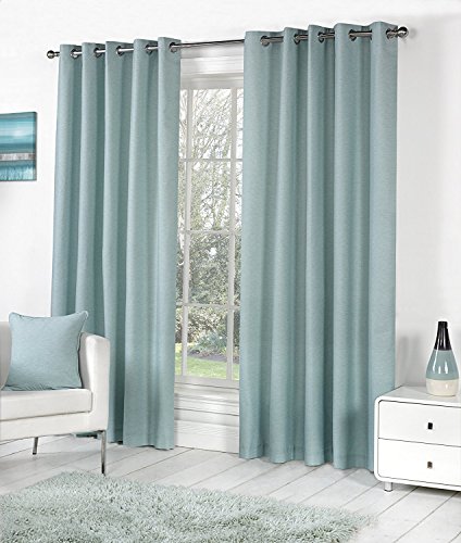 Fusion Sorbonne Duck Egg Blue Drapes W117 x L137cm – 2 Panels – 100% Cotton Eyelet – Thermal Light Blue Curtains for Bedroom/Living Room – Door Panel – Soft Textured Fabric