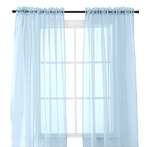 Elegant Comfort 2-Piece Sheer Panel with 2inch Rod Pocket - Window Curtains 60-inch Width X 84-inch Length - Light Blue