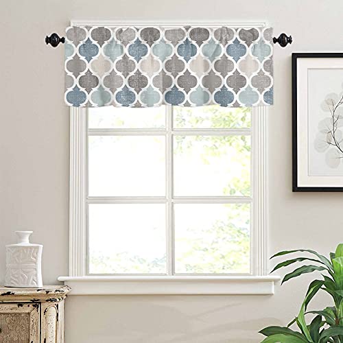 Valances Curtains for Living Room Retro Blue Moroccan Geometric Pattern Semi Sheer Valance for Windows Rod Pocket Short Window Treatment Decor Curtains Light Filtering Kitchen Valance 54"x18"