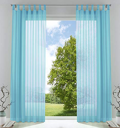Gardinenbox Pack of 2 Transparent Curtains Set Living Room Voile Tab-Top Curtain with Lead Band Closure, 100% Polyester, Light Blue, H x W 245 x 140 cm
