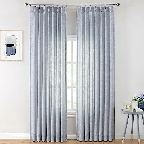 Vision Home Blue Pinch Pleated Semi Sheer Curtains Textured Light Filtering Window Curtains 108 inch for Living Room Bedroom Rayon Blend Chambray Blue Pinch Pleat Drapes with Hooks 2 Panels 40"Wx108"L