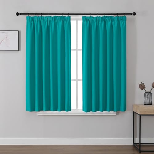 Joydeco Pencil Pleat Blackout Curtains W55 x L69 Inch 2 Panels for Ceiling Track, 85% Light Blocking Peacock Blue Curtains 175cm Drop with Rod Pocekt for Bedroom Living Room (No Hooks)