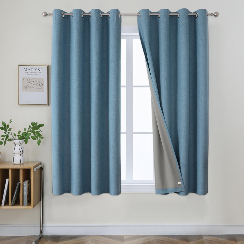 Anpark Light Blue 100% Blackout Curtains for Bedroom Decorations, Thermal Insulated Linen Look Grommet Window Curtain Drapes with Black Back for Living Room, 52 x 63 Inch Length, 2 Panels