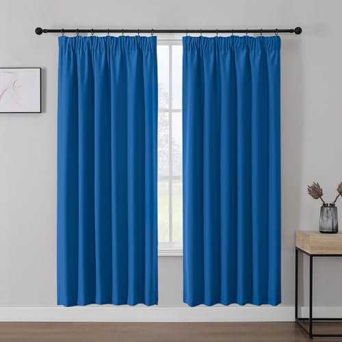 Joydeco Pencil Pleat Blackout Curtains W55 x L82 Inch 2 Panels for Ceiling Track, 85% Light Blocking Royal Blue Curtains 208cm Drop with Rod Pocekt for Bedroom Living Room (No Hooks)