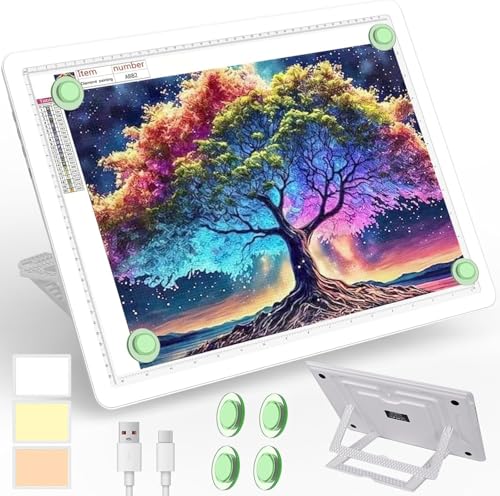 Zocelight A3 Light Pad for Diamond Painting Kit,4800Lux Super Bright 5mm Ultra Thin Diamond Art Light Board with Stand and Clip,3 Levels Dimming Light Box for Artists,Drawing,Sketching,Animation