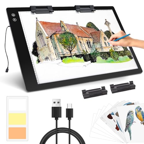 8000+Lux Super Bright A4 Light Box Drawing Pad with 3500mAH Battery,6 dimming Levels and 3 Color temperatures Light Table,Light pad for Artists, Drawing,Sketching,Tracking,Weeding Vinyl