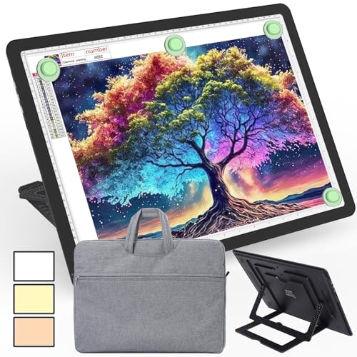 Zocelight Rechargeable A3 Light Pad for Diamond Painting With Padded Case,light board with stand,3 Colors Stepless Dimmable and 6 Levels of Brightness light box for tracing,Drawing,Sketching,Animation