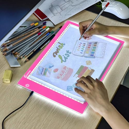Light Box Drawing A4,Tracing Board with 3 Brightness Adjustable for Artists, Animation Drawing, Sketching, Animation, X-ray Viewing (Red)
