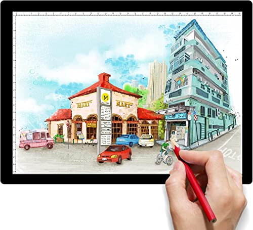 HSK A3 Artist tracing Light Box Copy Table, 12V1A Adapter Power Dimmerable 6000 Lux Lock Button Artcraft Light Pad for Tatto Drawing, Sketching, Animation,Diamond Painting