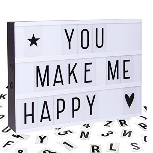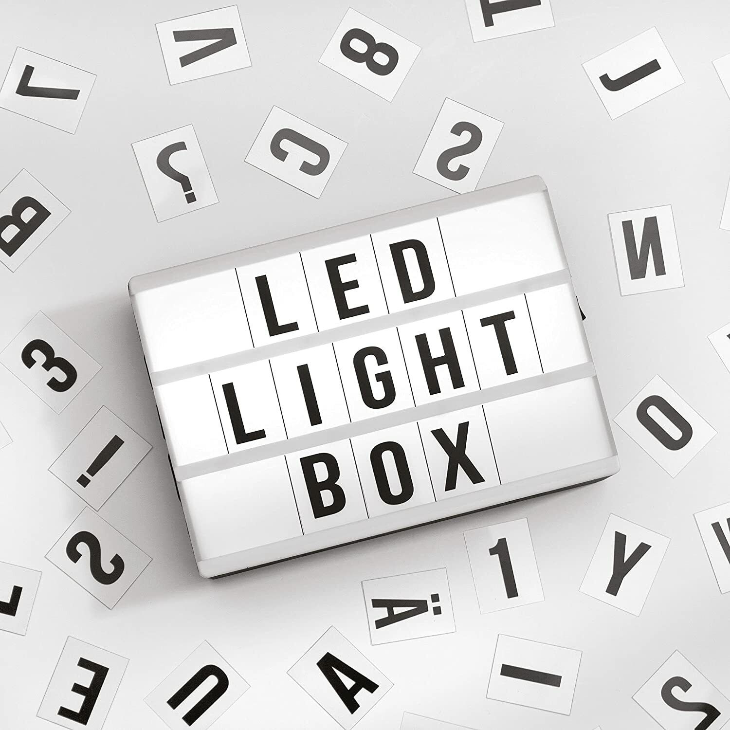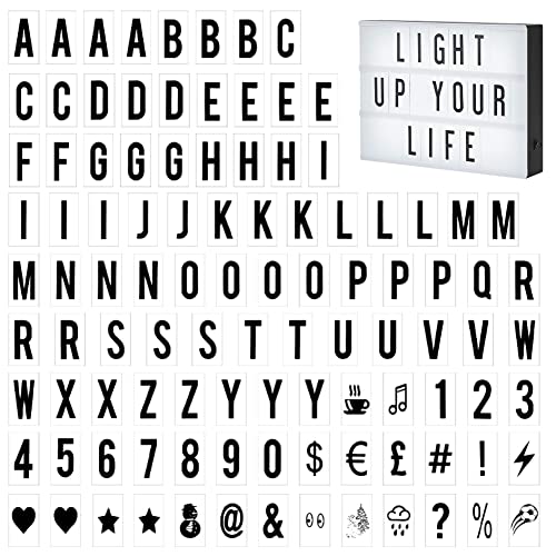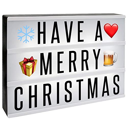 Almineez A4 Cinematic Lightbox Includes 85 Letters & Emoji Symbols | Illuminated Bright LED Light Up Box Sign | Battery Powered | Halloween Xmas Decoration Party Wedding Plaque Shop