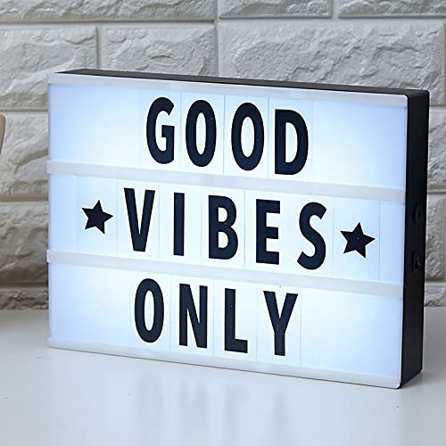 Almineez A4 Cinematic Lightbox Includes 90 Letters Emoji Symbols Illuminated Bright LED Light Up Box Sign Battery Powered Halloween Xmas Decoration Party
