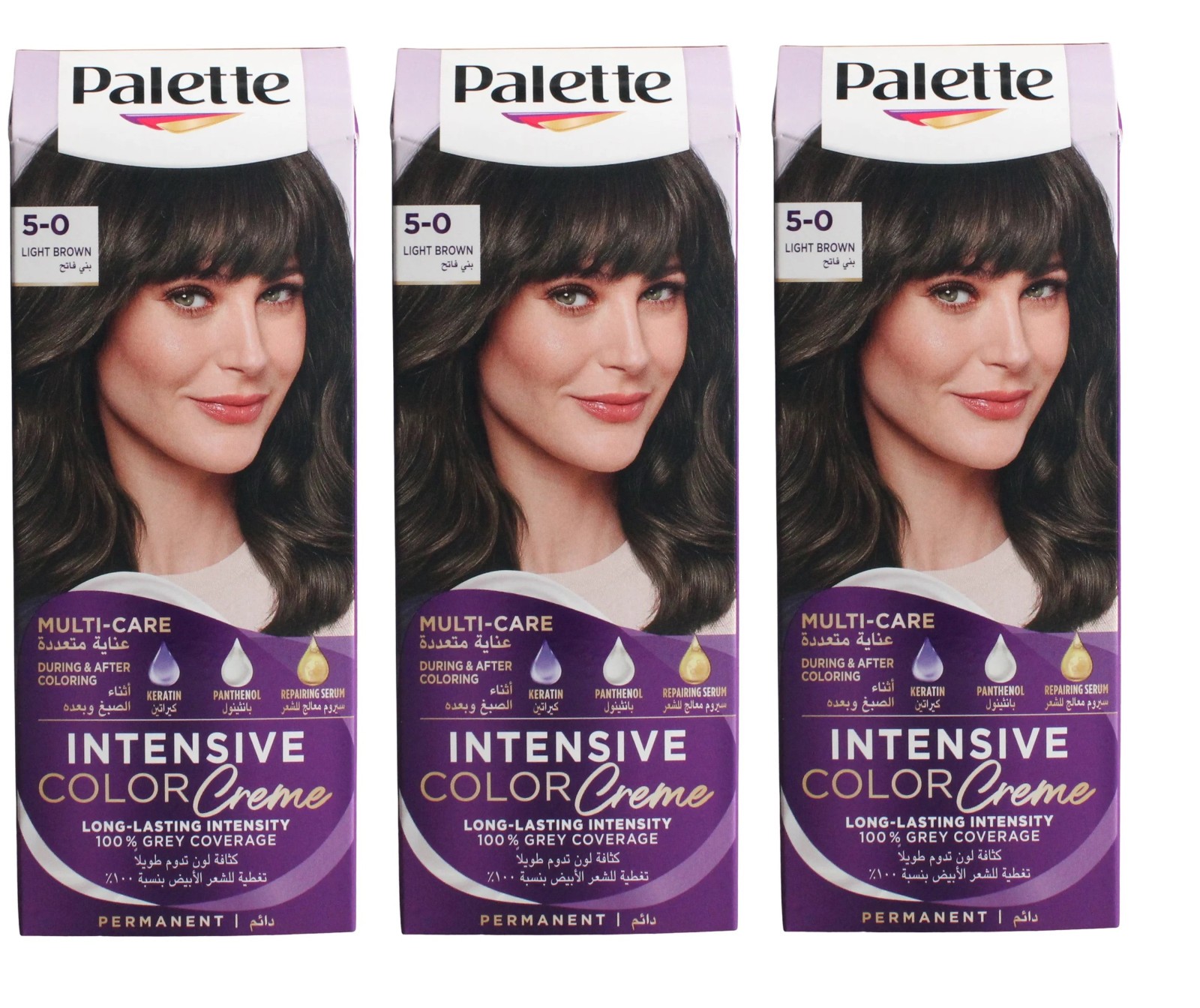 3 x Schwarzkopf PALETTE Intensive Color Creme Hair Dye 5-0 Light Brown