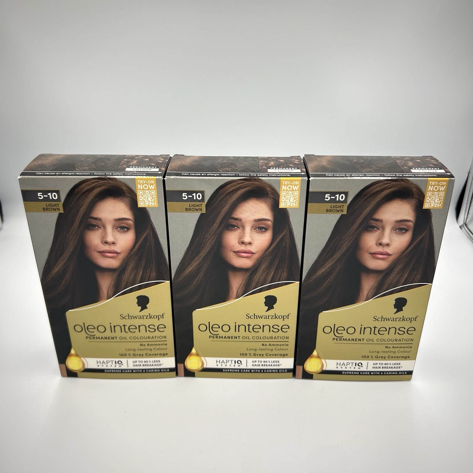 3x Schwarzkopf Oleo Intense Permanent Hair Dye Colour 5-10 LIGHT BROWN