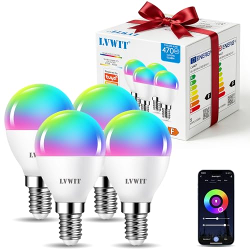 LVWIT Smart E14 Light Bulbs, Golf LED Bulb,470Lm, Color WiFi,5W Replace 40 Watt,Smart Light Bulbs Screw E14,Compatible with Alexa Google Assistant,TUYA/Smart Life APP Bulb 4 PCS