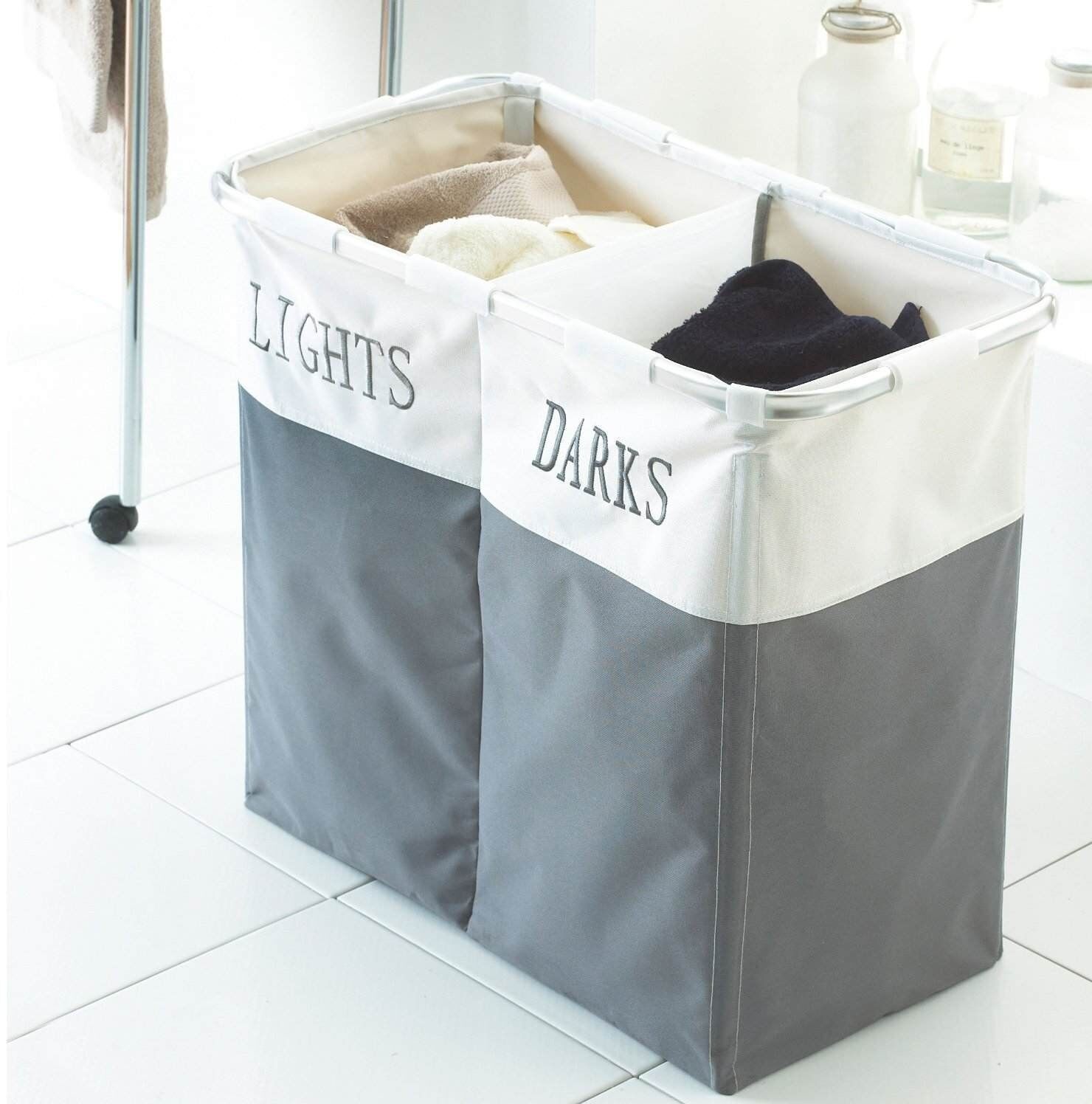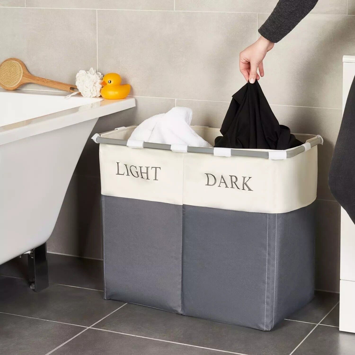 Laundry Basket Hamper Light & Dark 2 Compartments Washing Dirty Clothes Bin