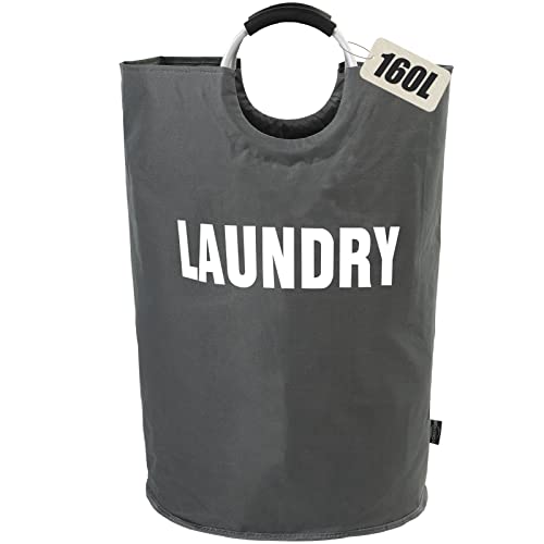 DOKEHOM 160L XX-Large Laundry Basket (7 Colors), Collapsible Laundry Bag, Foldable Laundry Hamper, Folding Washing Bin (Dark Grey, XXL)