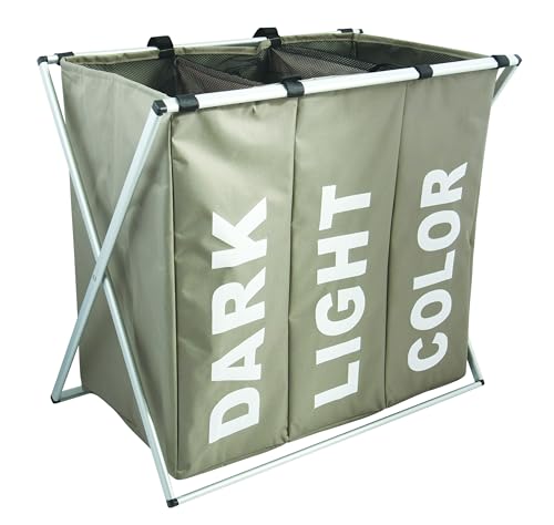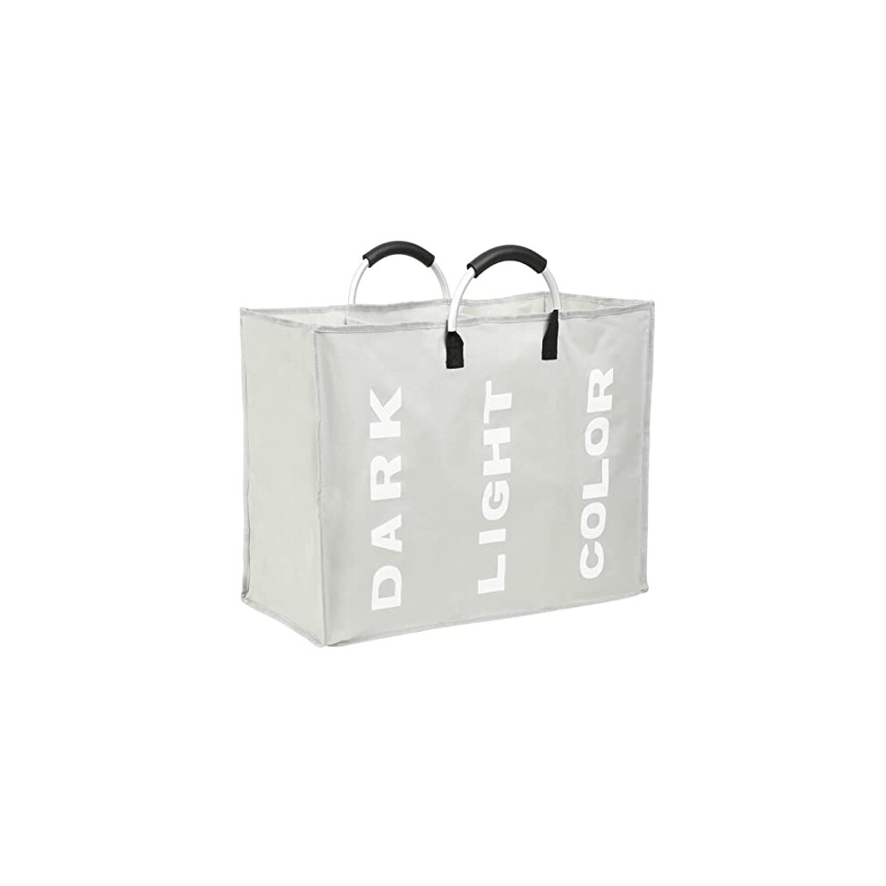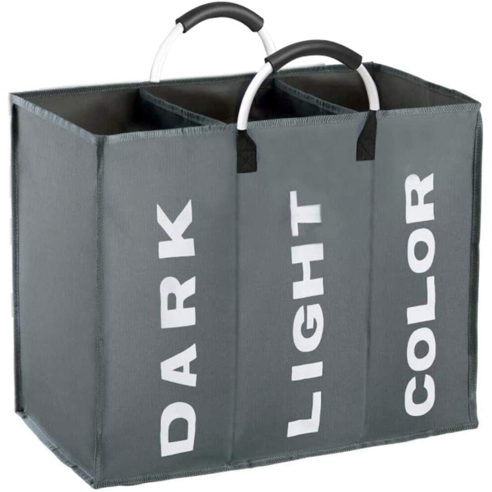 (Default) GoDyna Large Laundry Basket 3 Sections Aluminium Folding Laundry Cloth Basket Washing Hamper Bin Storage Bag Light Dark for Bedroom Black an