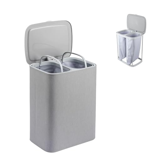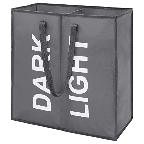 DOKEHOM 80L Large Collapsible Washing Laundry Basket Bag with 2 Sections for Bedroom, Fabric (Dark Grey)