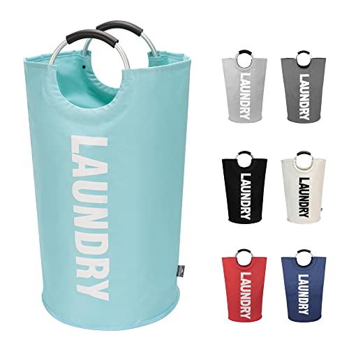 DOKEHOM 90L Large Laundry Basket, Collapsible Laundry Bag, Freestanding Tall Clothes Hamper, Foldable Washing Bin (Light Blue)