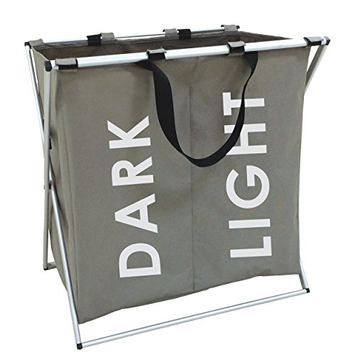 Country Club Lights and Dark Folding Laudry Basket Hamper Washing Cloths Storage, Metal, Grey/White,