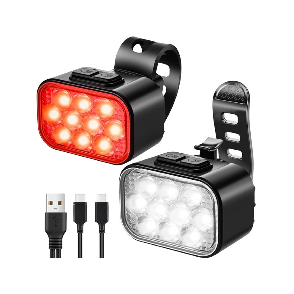 Akfldms 2PCS 10 LED Bike Light, USB Rechargeable Bicycle Lite Headlight& Taillight Set, Super Bright for Road, Night Riding