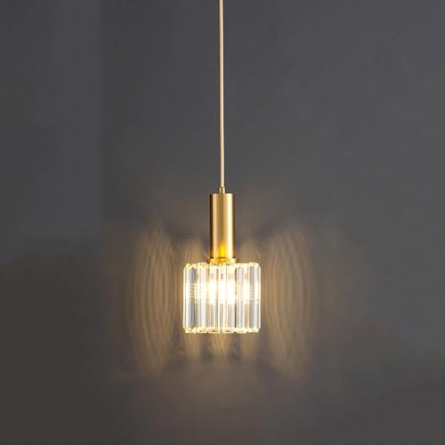 OGLFGLNY Gold Crystal Mini Pendant Light Island Bar 2-Light Farmhouse Black Crystal Small Chandeliers Modern Lamp Single Ceiling Hanging Light Fixture for Kitchen Dining Room Bedroom Restaurant