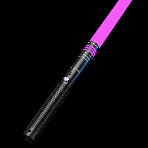 S OUJCEN Lightsaber Fx Dueling Force 15 RGB Colors Type-C Metal Hilt Rechargeable 4 Modes Force Fx Dueling Light Saber Lightsaber Gifts for Boyfriend Girlfriend and Adults (Black 1pc)