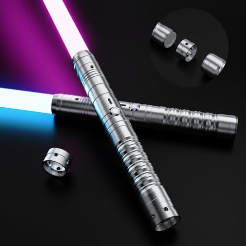 KYWLCO Lightsaber 2 Pack,RGB 15 Colors Metal Handle FX Light sabers,3 Sound Modes,Rechargeable Dueling Light saber for Children and Adults Cosplay Party(2 Pack Silver)