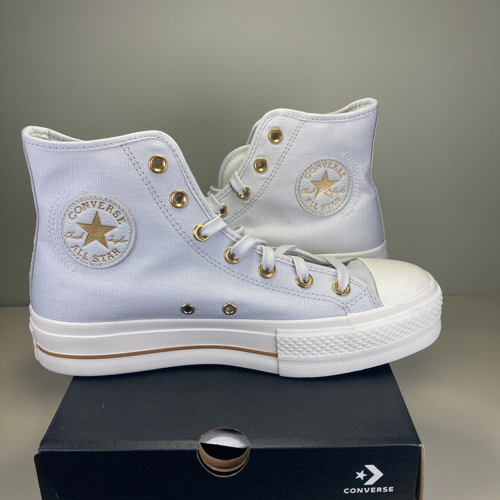 Converse Women's All Star Lift Hi Platform Trainers Light Grey /Gold UK 7 EU 40