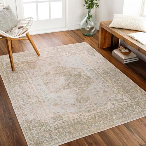 Livabliss Dukan Machine Washable Rug - Vintage Area Rugs Living Room, Large Rug 120x170 cm - Traditional Boho Rug Style, Dining Room, Kitchen, Outdoor, Hallway - Beige, Ivory and Light Grey Rug