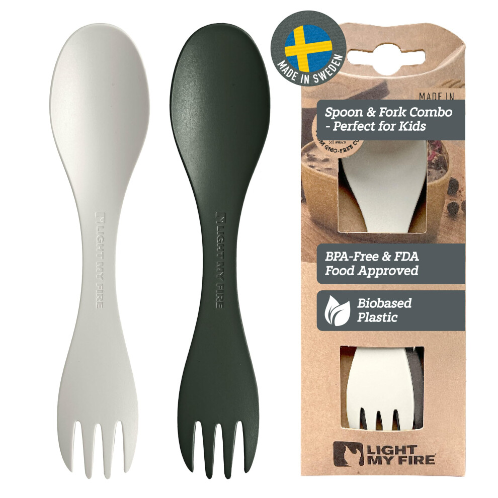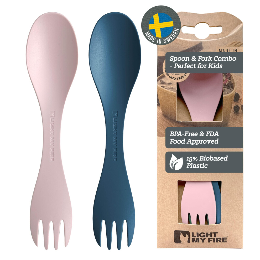 Light My Fire Spork Little 2-in-1 Durable Kids Cutlery Set 3 Year Old 2-Pack Reusable Travel Toddler Cutlery Set, BPA-Free Easy-to-Use Picnic Sporks