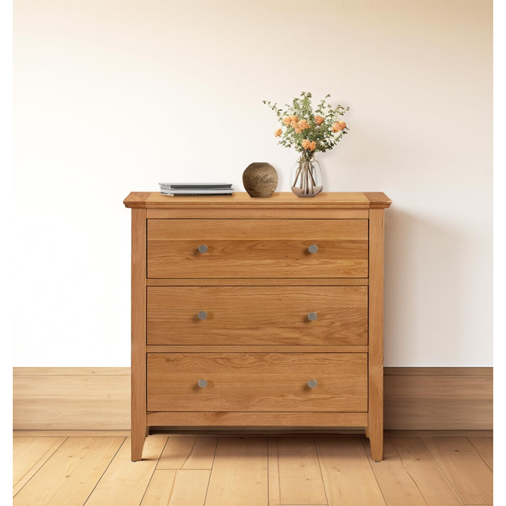 Hallowood Furniture Hereford Oak Chest of Drawers, 3 Wooden Chest Drawers, Small Solid Light Oak Dresser for Bedroom, Living Room & Hallway, Fully Assembled Bedroom Furniture