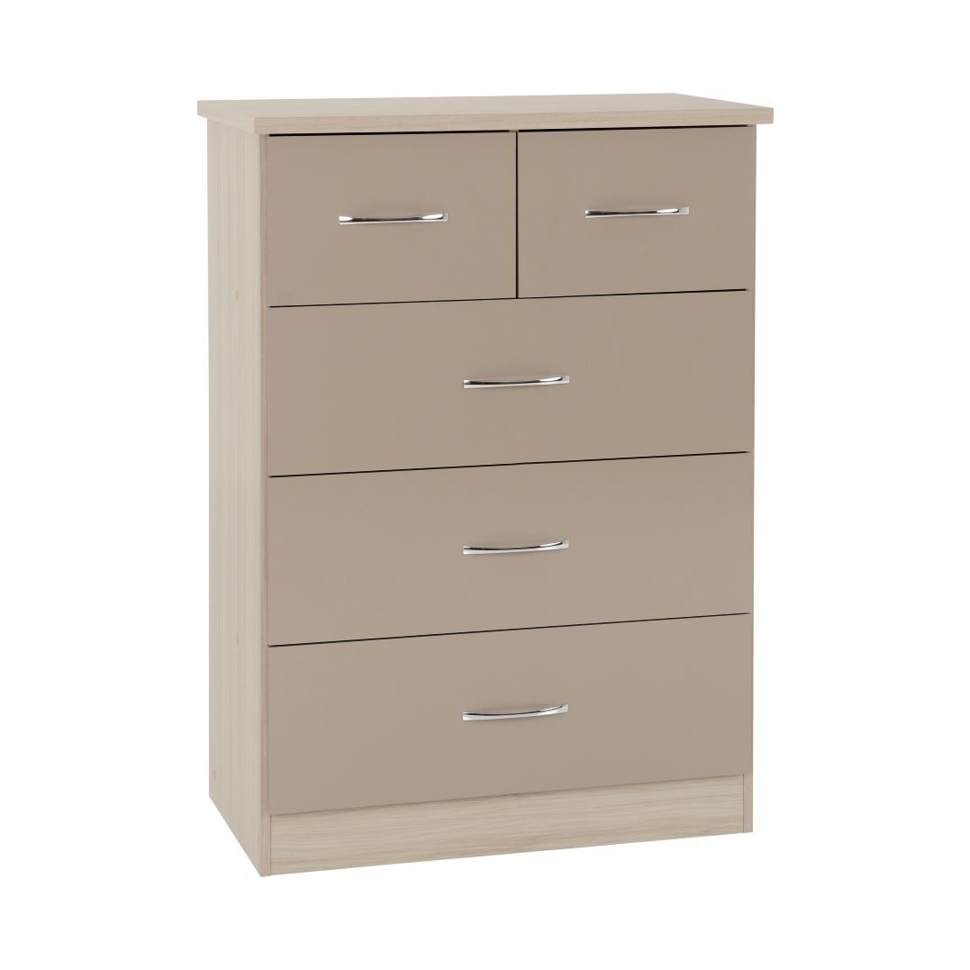 Kelsey Stores Nevada 3 Plus 2 Chest Of Drawers 5 Drawer Chest (Grey Gloss/Light Oak Effect Veneer)