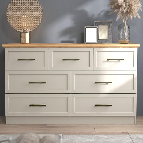 Galano Durban 3+4 Drawer Chest – Storage Cabinet for Bedroom, Hallway & Entryway – Closet Organizer with 7 Drawers – Light Grey/Oak