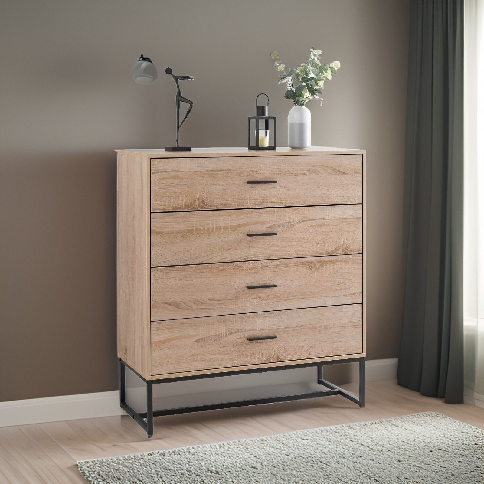 Dylex Chest of 4 Drawers, Wooden Bedroom Storage Cabinet, Light Oak Effect, Clothing Storage Unit