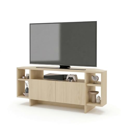 Bimossa Ola Corner TV Unit for TVs up to 50 Inch, TV Stand with Storage Cabinet & Shelves, Space Saving Media Console for Living Room, Modern Corner Television Unit, 6 Colour Options (Light Oak)