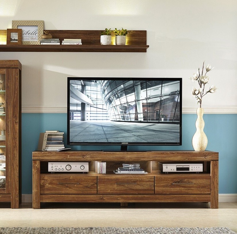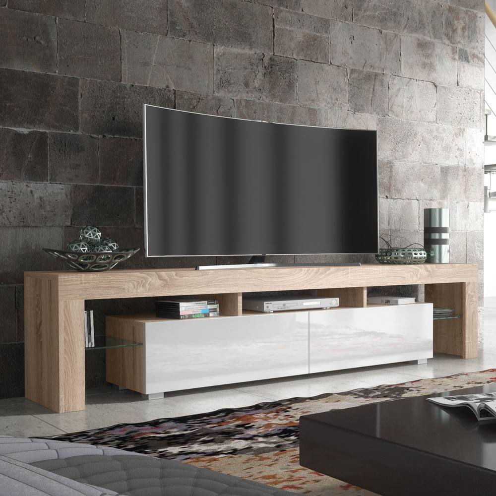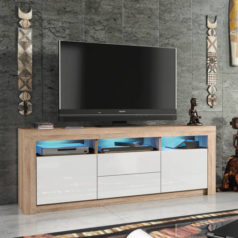 TV Cabinet Stand Unit 3 Drawer Modern LED Light 200cm Wide Long Oak Effect Gent