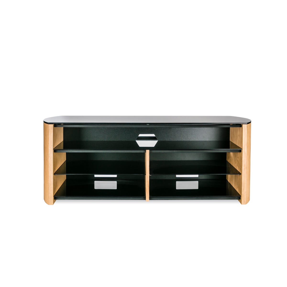 Soho Oak Open Low Widescreen TV Unit – Modern Curved Design for TVs up to 65", Natural Light Oak Finish, Softly Rounded Corners - H 350mm x W 1350mm x D 350mm