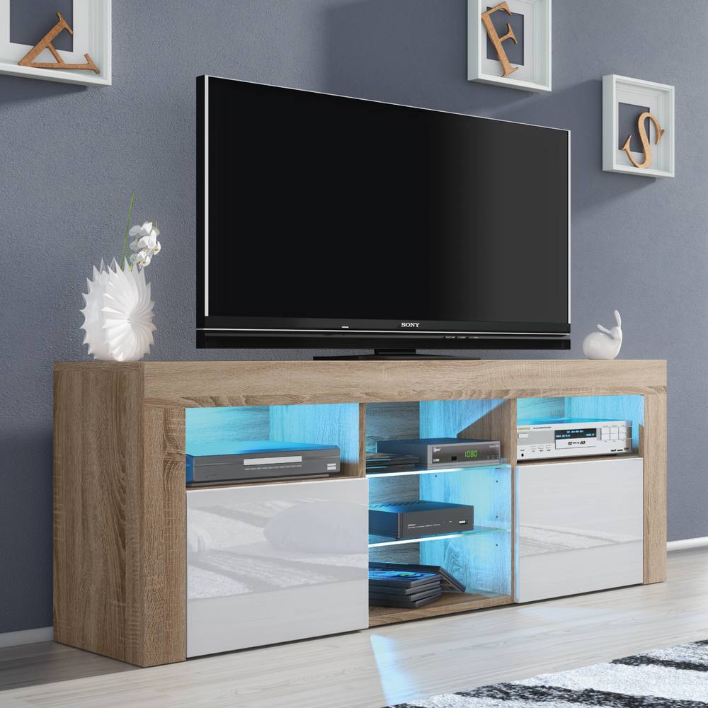 TV Stand Cabinet Compact TV Storage Drawer Unit 138cm LED Light Oak Effect Gent